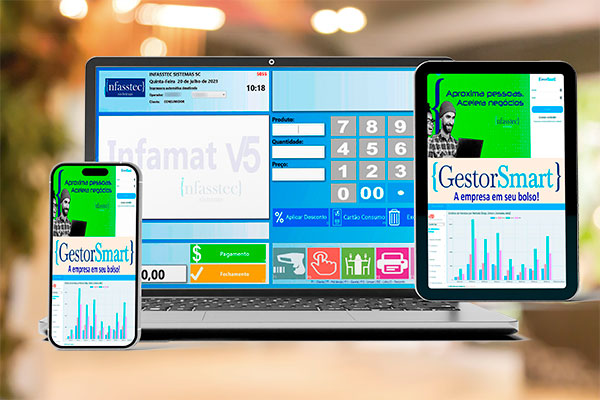 Mais que um software, o Infamat® é o seu parceiro estratégico que centraliza e automatiza cada tarefa, do início ao fim. Da emissão de notas fiscais à gestão de estoque, vendas e finanças, ele te dá o controle total que você precisa para tomar decisões rápidas e assertivas.